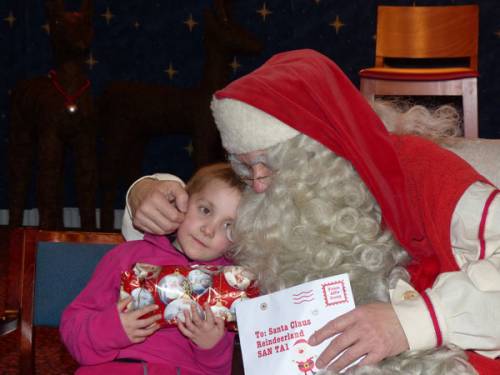 Then it was back onto the coach where we headed to the Hotel Pojanhovi in the centre of Rovaniemi, where a delicious buffet lunch was served before Santa arrived. The celebrities took to the stage and began singing traditional Christmas songs and Carols and ended with a rousing rendition (or 3) of Rudolph the Red Nosed Reindeer which ultimately heralded the arrival of Father Christmas himself – the REAL Father Christmas, of course. Each of the children took their place next to Santa and handed over their special letter in return from a beautifully wrapped gift. This was clearly the main attraction for many of the children, but the looks on the faces of the parents/guardians served as a reminder that this day was just as important for them as they were able to share a quality memory with their precious children.